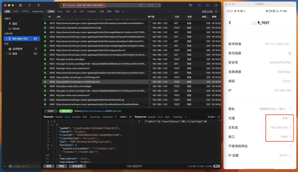 如图 Proxyman 顶部有一个 ip:port,如果想要手机的网络请求在 Proxyman 中显示,需要在手机的 wifi 代理选项里面填入这个 ip 和端口。这时手机上所有的网络请求都能在 Proxyman 上看到了,如果是 https 请求可能还要做一些其他设置,这个是抓包工具使用问题,非本文重点不做介绍。