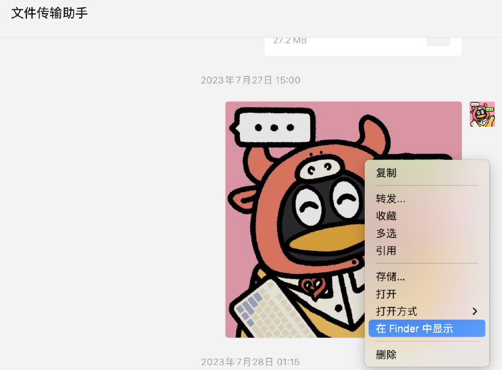 1.在收到的图片上右击选择“在 Finder 中显示”