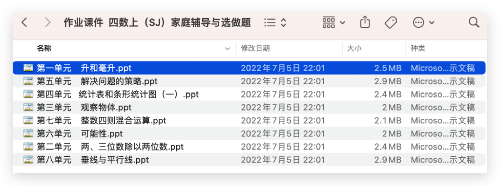 今天收到老婆的一个微信,要给四年级的娃打印作业。是一个压缩文件,里面有 8 个 PPT 文件,数了一下快到 90 页了。