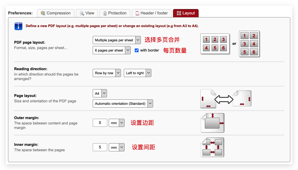 后面就想去网上看看有没有相关的在线工具,开始以 ppt page merge online 关键字搜索,后来逐渐跳转到 convert ppt to pdf 2 slides per page online 关键字,就遇到了今天的主角 https://online2pdf.com/convert-ppt-to-pdf,比本地的还要好用,完全契合了本次的需求。